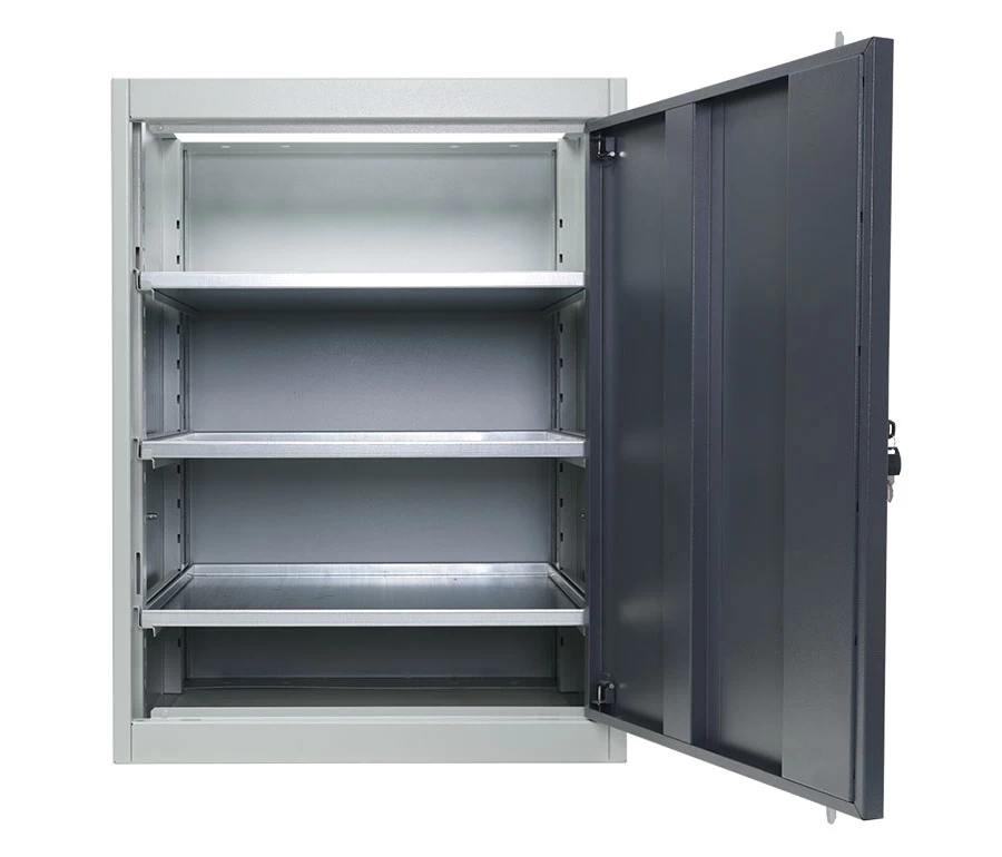 - Полки выполняются из металла 1.2 мм и передвигаются по высоте с шагом 50 мм.