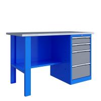 - Верстак состоит из прочной двухслойной столешницы, поддерживаемой тумбой и опорой из холоднокатаной стали, и полки-стенки.